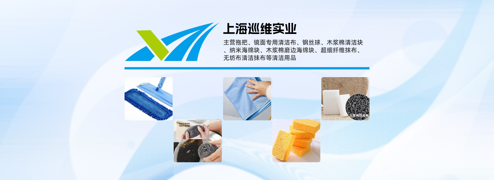 上海巡维实业有限公司主营拖把、镜面专用清洁布、钢丝球、木浆棉清洁块、纳米海绵块、木浆棉磨边海绵块、超细纤维抹布、无纺布清洁抹布等清洁用品。公司秉承以真诚的信念,来换取您对我们的信任;以专业的服务,来换取您对我们的满意;以优惠的价格,来换取客户和企业的双赢。在新的时代背景下,我们将不懈努力,以恪尽职守的敬业精神和专业素养,坚持以客户的利益为上,为客户营造良好的合作环境,共同发展,一起创造美好的未来。